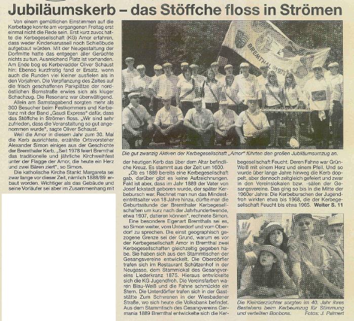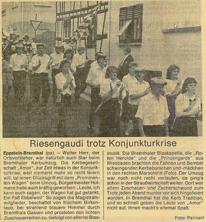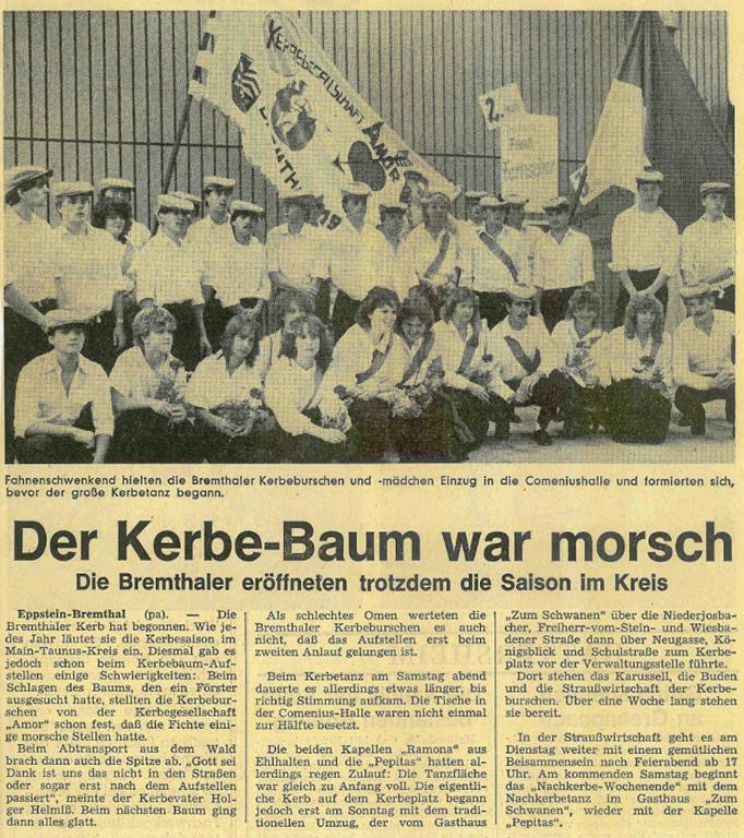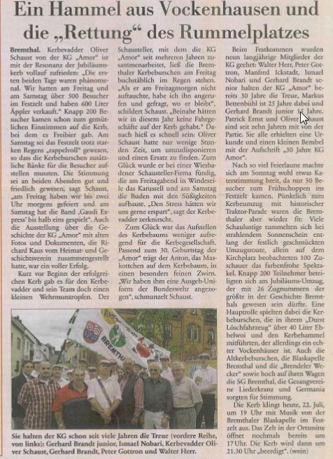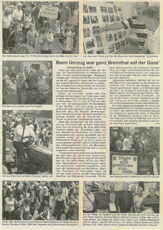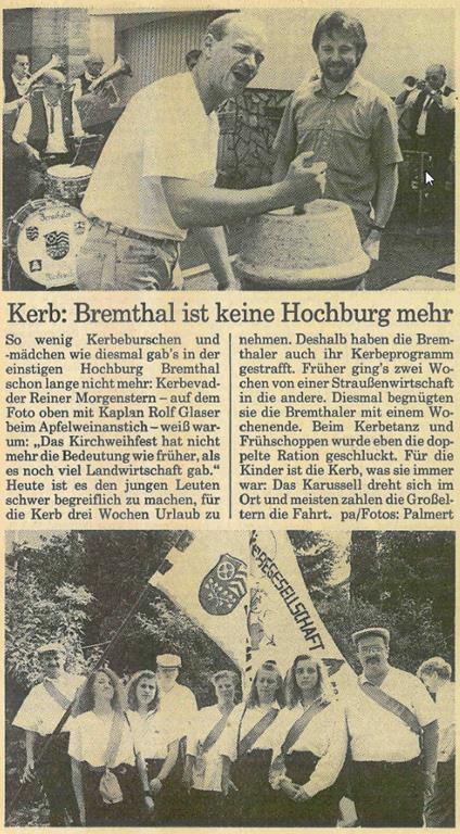 Nicht nur im Verein hat sich in dieser Zeit einiges getan, die Infrastruktur hat sich für uns fundamental geändert - wir sind jetzt auch mit unserem Zelt auf dem Dorfplatz, die Schausteller sind andere, und überhaupt hat sich die Veränderung innerhalb unserer Gesellschaft natürlich auch auf unseren Verein und damit die Kerb in Bremthal niedergeschlagen.